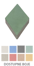 Ovaj opločnik se sastoji od tri jednostavna elementa i pruža brojne mogućnosti kombiniranja, proširene mnoštvom boja. Moguće su različite sheme postavljanja: romboidne, zvjezdaste i cik-cak kombinacije kao i sheme koje pružaju dojam trodimenzionalnosti. Skladnim kombinacijama boja površine popločane ovim opločnikom poprime razigran izgled. |